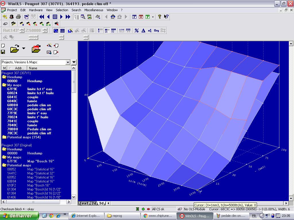Pour le calcul de la MAF, je trouve beaucoup de valeur identique mais quand je fais le calcul je trouve bien un AFR de 15, je n'ai rien modifié au-dessus de 4000 trs car jamais je pousserai un diesel à ce niveau-là.