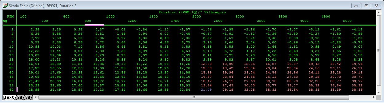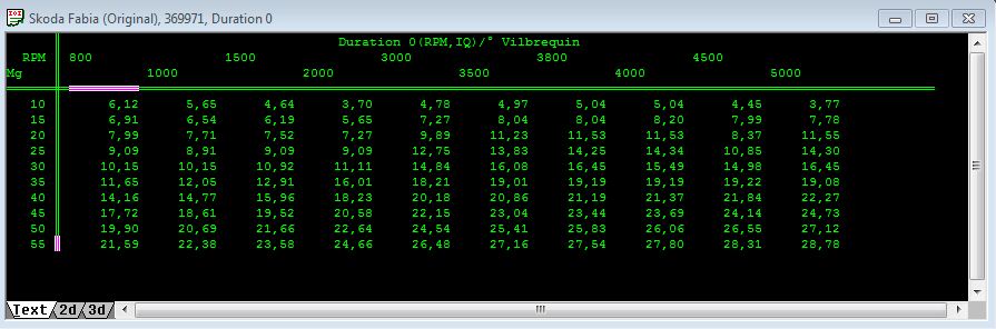 Bon petit deterrage pour vous faire part d'une prgo qui etait dans la voiture d'un ami skoda fabia vrs 1.9 TDI ASZ.Je ne suis surement pas un pro mais celui qui a fait cette prog ne l'est pas non plus.Je precise que je le connais depuis 3 ans bientot sa voiture ne roule plus vraiment turbo HS et surement autre soucis.Les durées c'est du grand n'importe quoi , la consigne est modé et pas la single.Les avances sont stock ainsi que la durée 0 etc